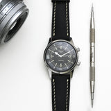 Nos bracelets en cuir Crazy Horse sont fabriqués selon nos spécifications exactes. Ces bracelets ont un profil plus robuste et rembourré et s'effilent subtilement des cornes à la boucle. La collection Crazy Horse est équipée d'une boucle robuste et brossée (avec une barre à ressort) et de poussoirs à déclenchement rapide. Les attaches sont légèrement plus larges pour s'harmoniser avec l'aspect général du bracelet.
