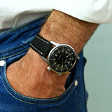 Delugs - Bracelet montre en veau Crazy Horse - Noir